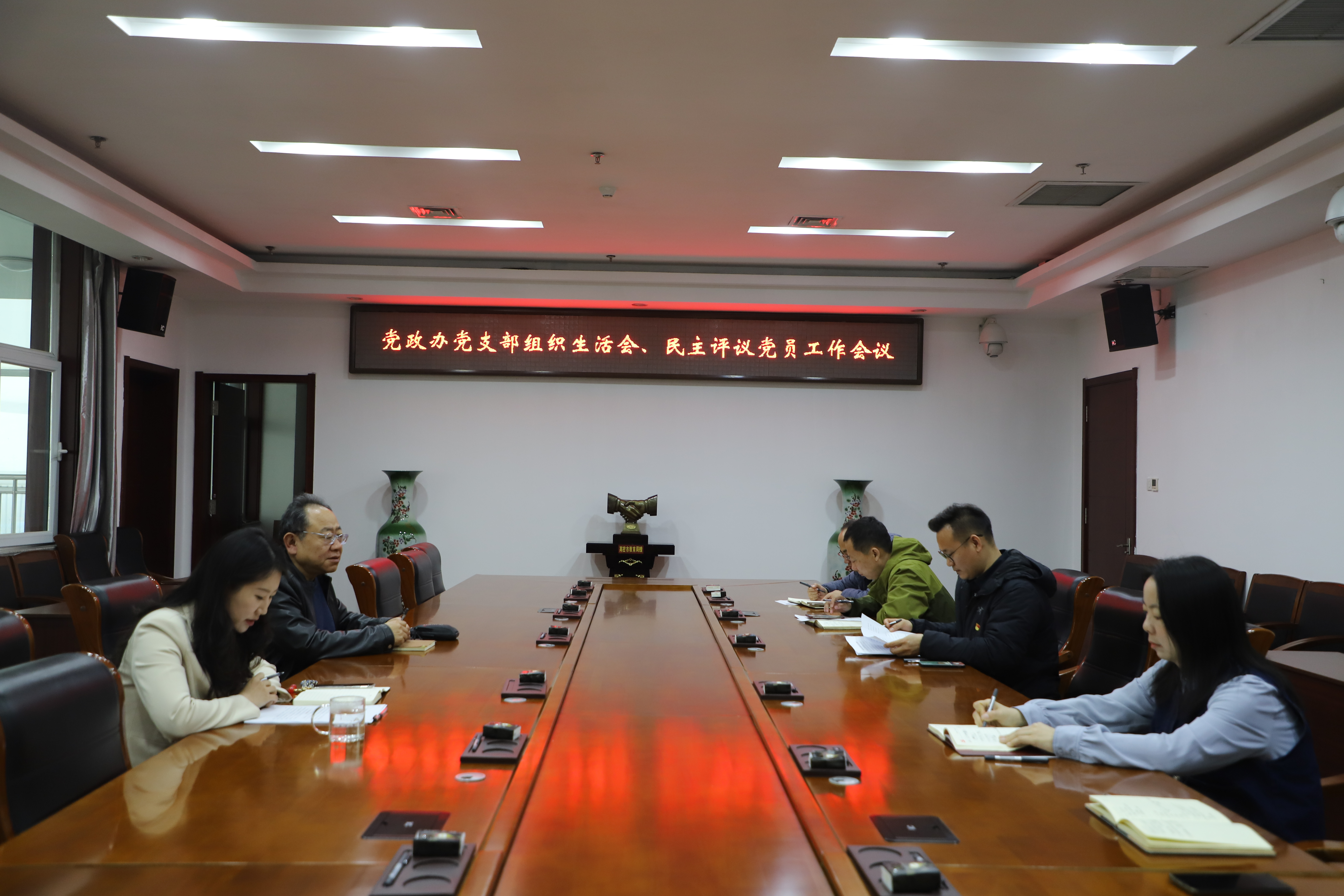 3月18日上午,党政办支部在915会议室召开组织生活会及民主评议党员工作会议。校区管理办公室副主任孙桂新到会旁听,党支部书记钟鸣主持会议,支部全体党员参加。