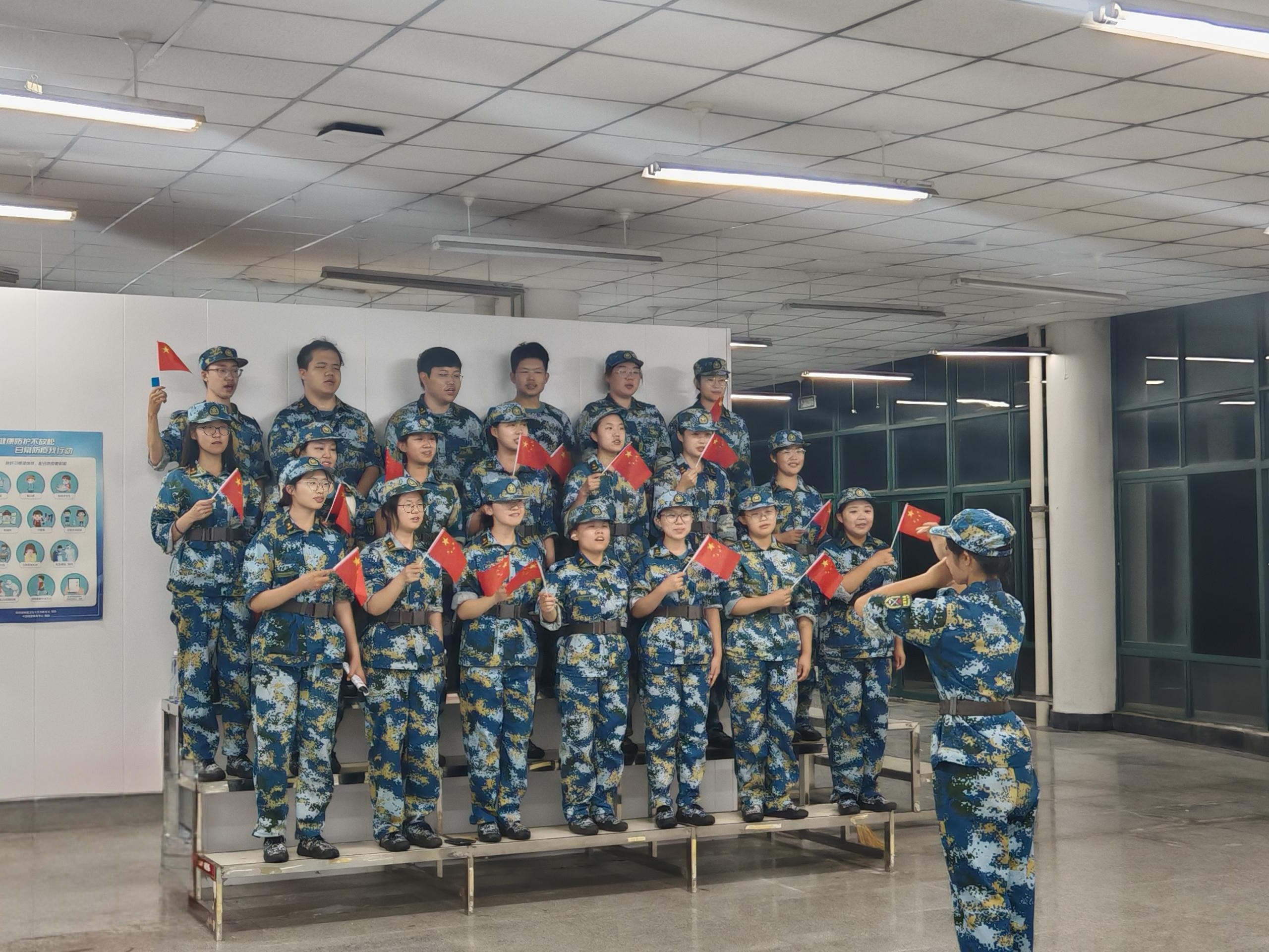 以赛促建,军事竞赛激发迷彩热情。军事技能竞赛作为巩固军训成果、延续优良作风的重要抓手,通过设置歌咏、内务等集体性与生活化项目,有效激发了学生的参与热情,并将训练场上的纪律意识与拼搏精神延伸至第二课堂与团队建设中。“军歌嘹亮·凝聚人心”歌咏比赛以连排为单位组织,比赛中激昂的旋律、整齐的和声与富有创意的表现形式,不仅充分展现了团队的昂扬风貌,更在反复排练与协作过程中进一步增强了集体归属感和凝聚力。军训成果的转化不仅需要集体精神的共鸣,更需落实到日常行为的细节养成。校区同步开展聚焦生活习惯塑造的内务整理竞赛,以“豆腐块”式军被等成果展示赛,通过照片、视频等形式呈现宿舍整体环境。该活动有力推动了军训内务标准向日常生活的转化,促进学生形成整洁有序的良好生活习惯。