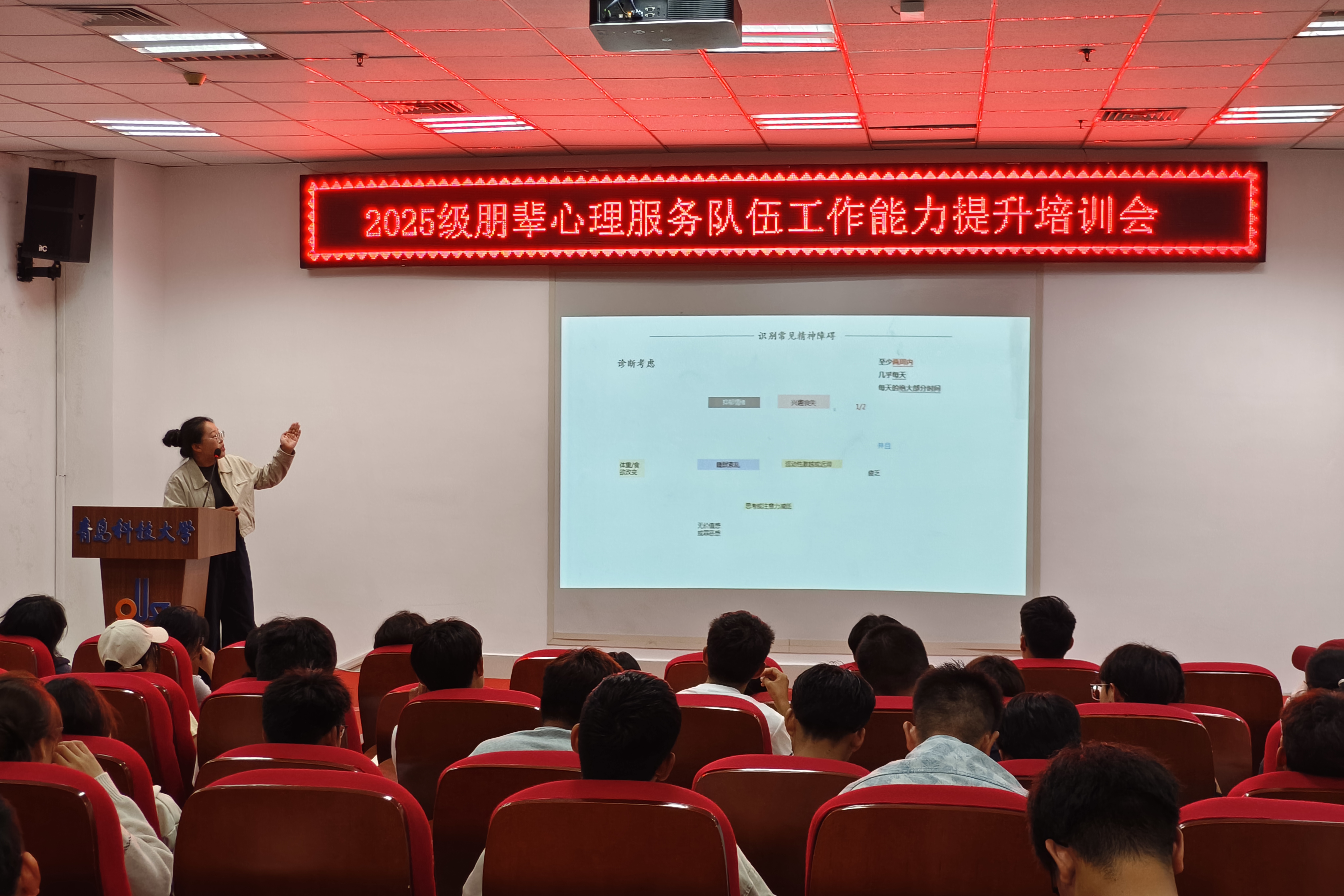 【朋辈赋能:从意识到行动,筑牢心理防线】为帮助2025级新生班级学生骨干迅速进入角色,明确工作职责,夯实班级心理安全基础,9月23日,高密校区专门为新生班级临时负责人组织了专题培训。培训内容系统涵盖朋辈支持者的角色认知、基础心理知识、常见问题识别与应对技巧以及有效沟通方法等,旨在为新生顺利度过适应期提供坚实的心理支持。
