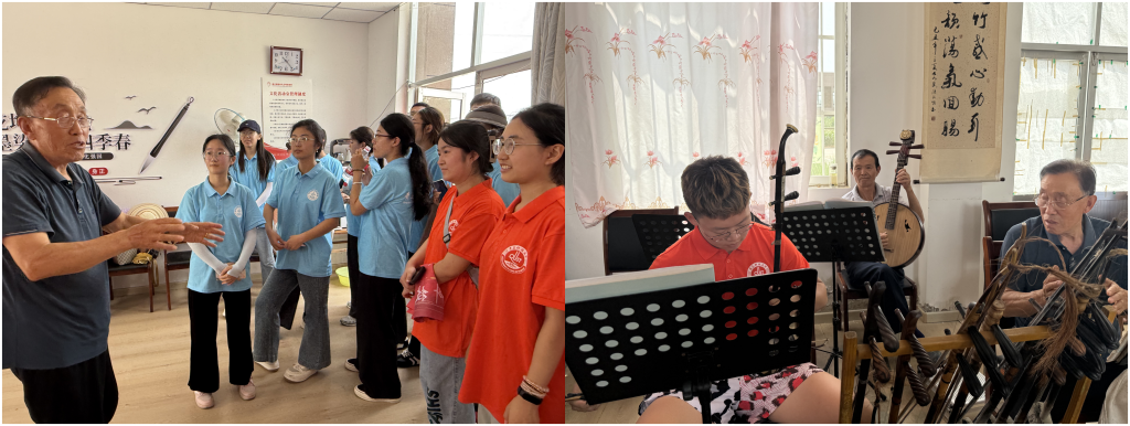 在蚕庄镇文化馆,当地文艺爱好者们弹奏传统乐器、演唱吕剧经典选段,婉转旋律里,尽显非遗魅力。实践队成员演绎《二泉映月》,双方的交流互动,一场“艺韵传承对话”,让传统文化“活”在当下,也让青春与非遗碰撞出传承火花。