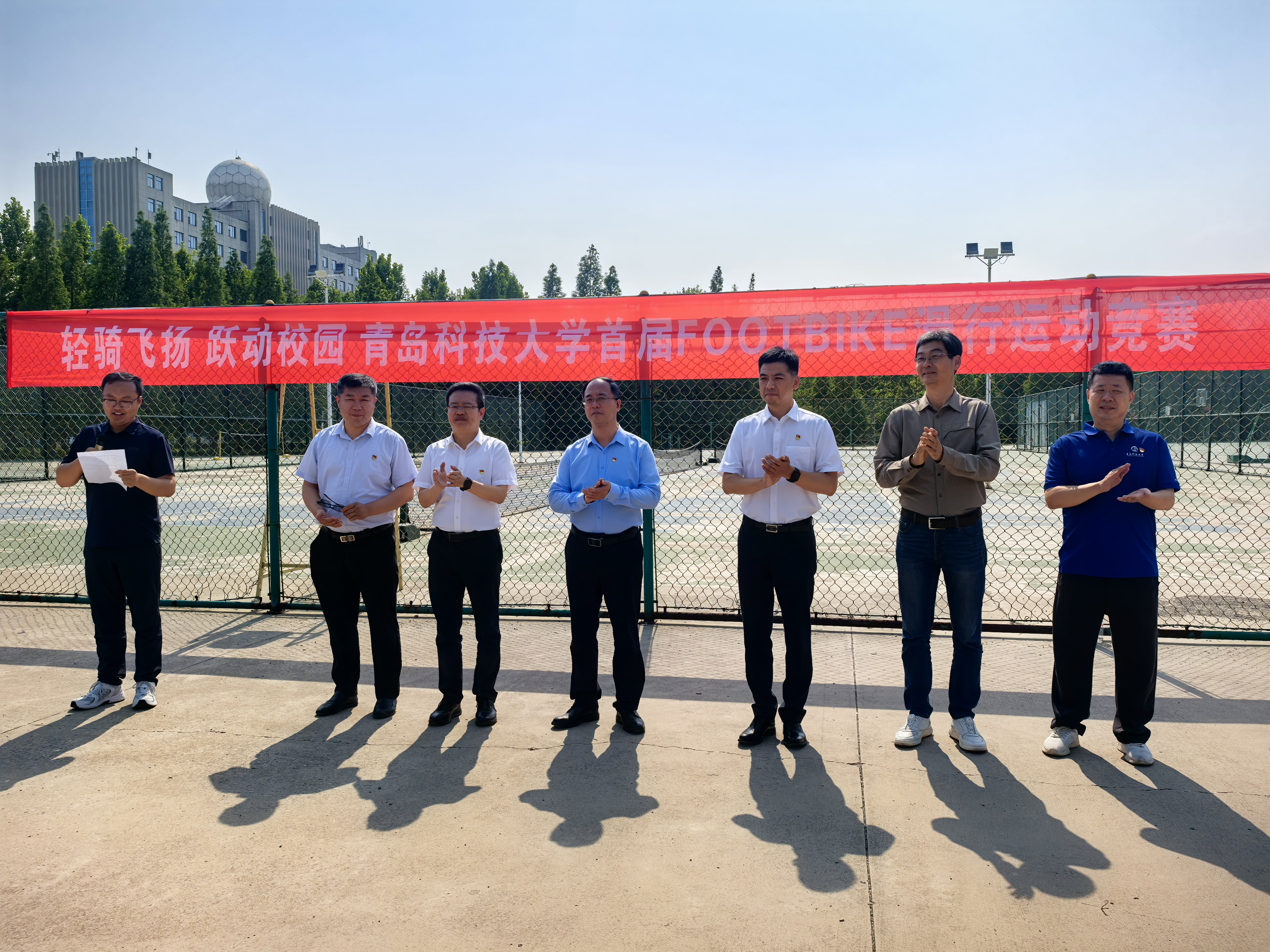 为深入推进综合育人工作,丰富学生课余文体生活,5月27日下午,青岛科技大学首届“轻骑飞扬,跃动校园”FOOTBIKE滑行运动竞赛在高密校区田径场举行。校党委常委、副校长罗细亮出席活动并为比赛鸣笛发令。