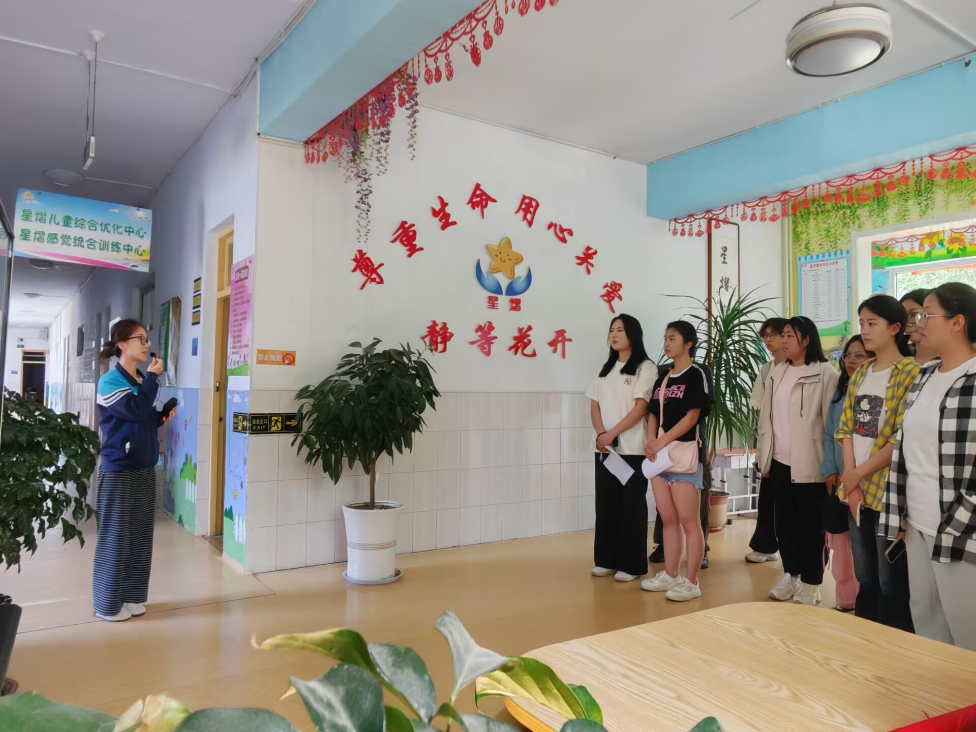 5月24日活动当天,20名志愿者早早来到星熠家园,精心布置活动场地,准备表演道具和手工材料。活动伊始,星熠家园的老师向志愿者们详细介绍了家园的服务理念、运营模式及孩子们的日常学习生活情况,帮助志愿者深入了解孤独症儿童群体的特殊性与需求。之后,志愿者们共同观看了星熠家园的专题介绍影片,进一步直观感受家园为孩子们营造的康复与成长环境,加深了对特殊教育工作的理解与敬意。