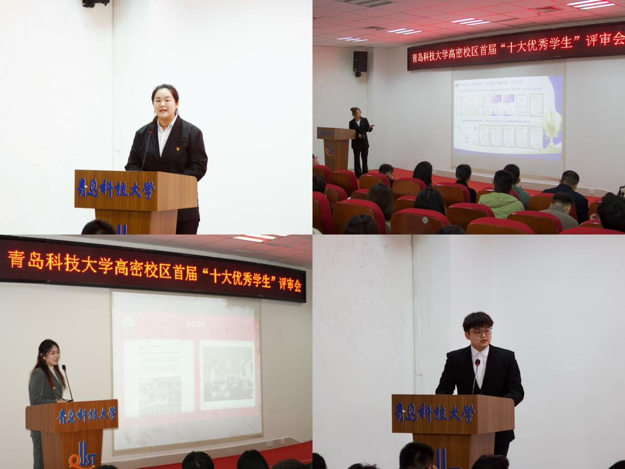 会上,来自各班级的候选人依次登台,以清晰的逻辑、饱满的热情,从学业科研、学科竞赛、创新创业、学生工作、社会实践五大核心维度,全方位讲述个人成长故事,立体呈现奋斗历程与丰硕成果,现场氛围热烈。此次“十大优秀学生”评选活动,是高密校区推进“榜样引领工程”的重要举措。通过搭建优质展示平台,校区不仅让优秀学生的先进事迹从“幕后”走向“台前”,更将其转化为可学可做、可追可及的育人资源,为校园优良学风建设注入强劲动力。