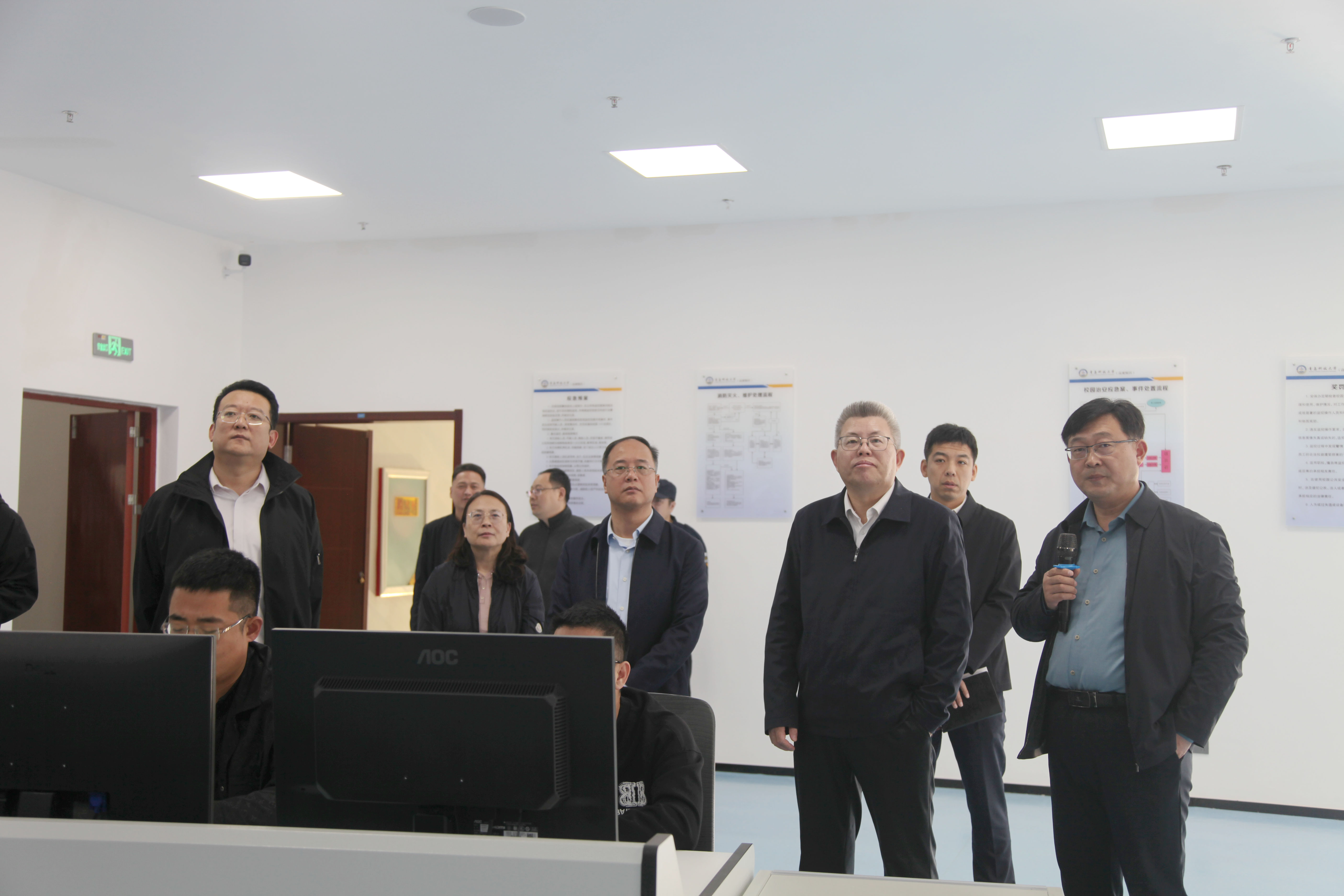 调研期间,杨天梅先后到高密校区安消一体化指挥中心、运动场、北苑学生公寓、通德会堂等实地检查,并深入课堂一线听课。