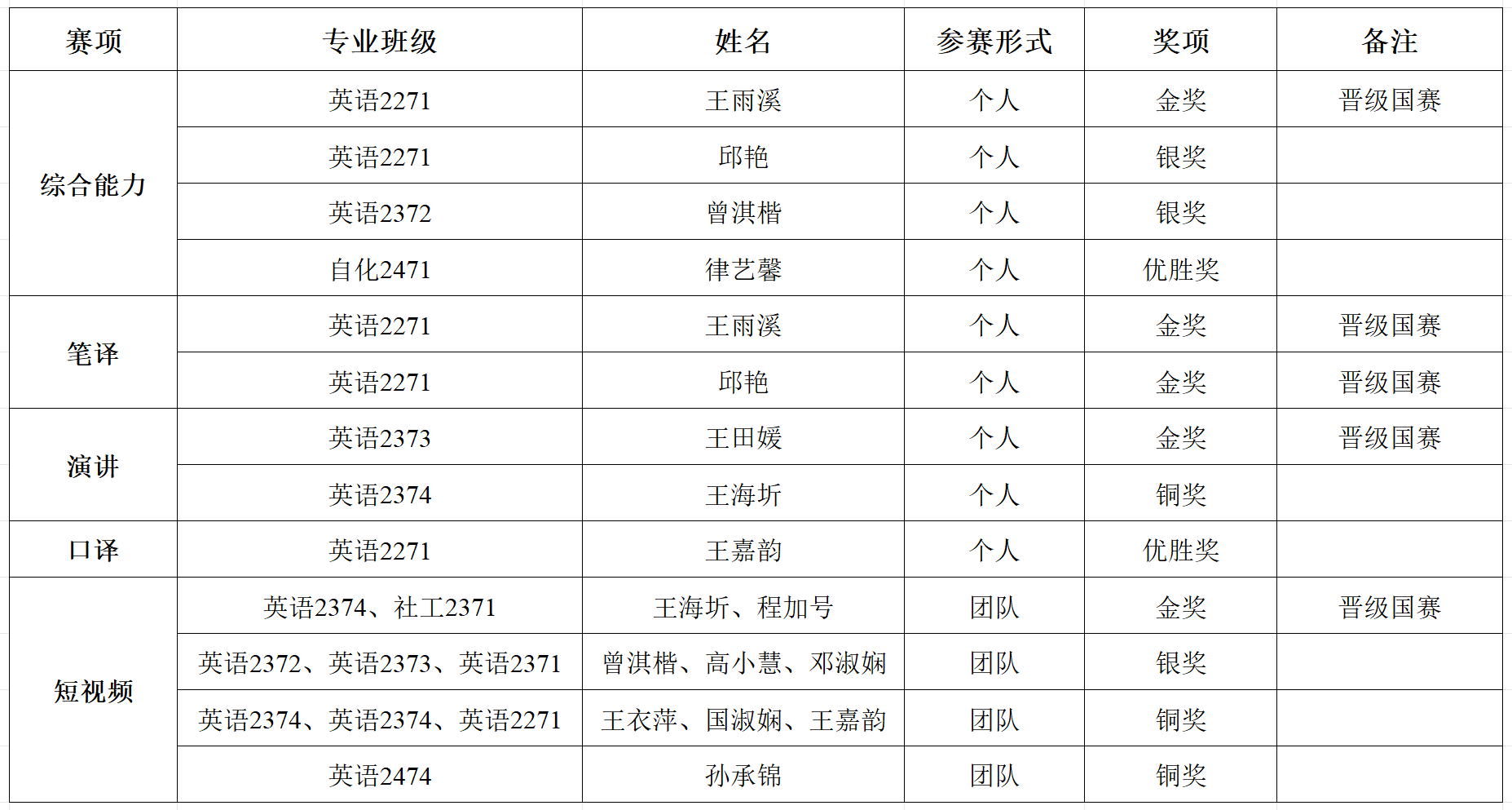 自今年3月22日大赛启动以来,校区学工办与外语系密切协作、积极筹备。依托校区英语口语大赛、写作阅读大赛、口译大赛、笔译大赛、短视频大赛五项赛事活动,多维度检验学生外语素养与实践能力,选拔出优秀选手与团队并提供针对性指导、组织多次模拟演练,为学生取得优异成绩奠定了坚实基础。(撰稿:石姝慧,徐连基;编辑:江研硕;审核:康宁,王作辉)