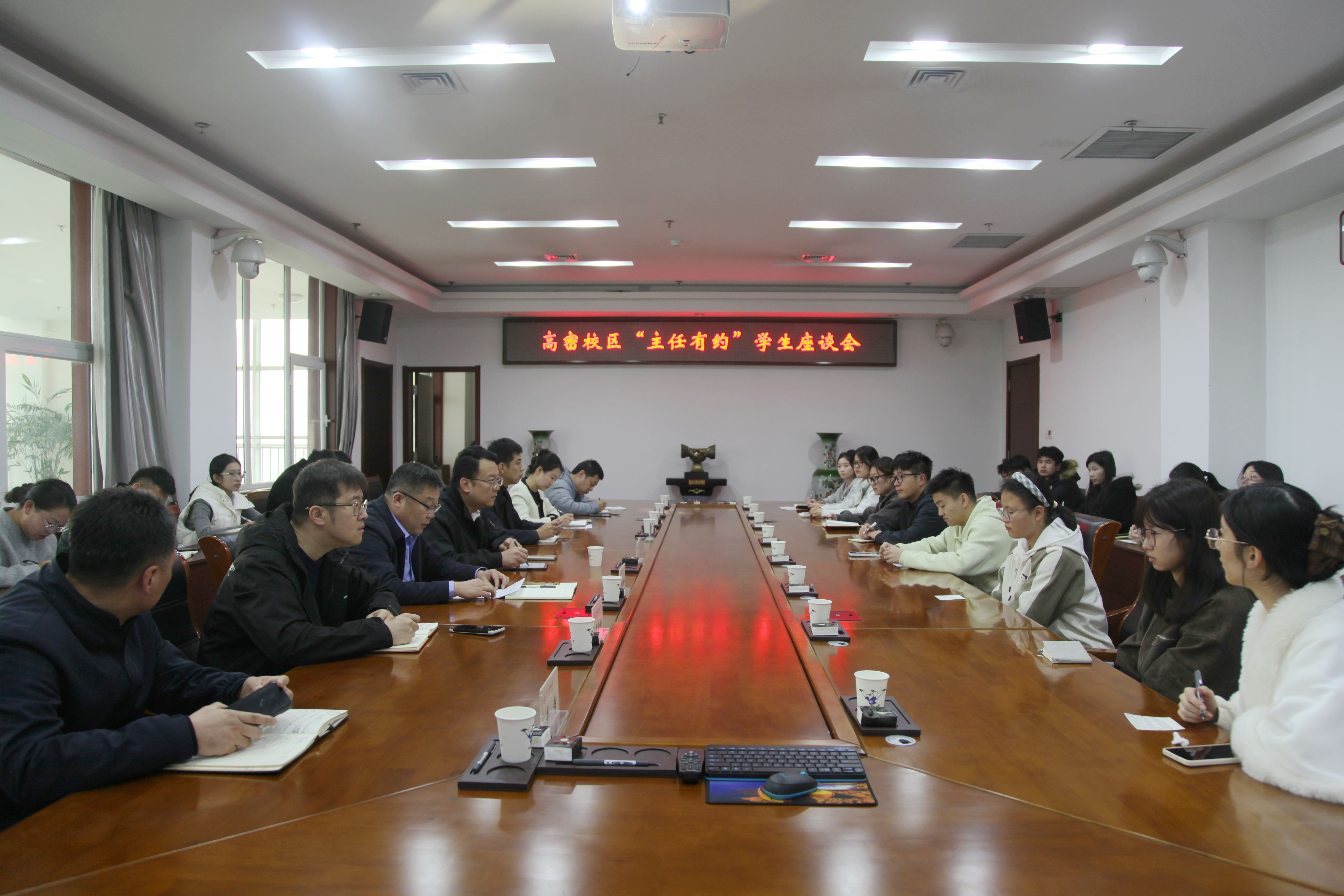 为加强与青年学生的沟通,及时了解其学习生活中的实际困难与困惑,切实做好教育引导工作,11月13日下午,高密校区在图书馆915举办“主任有约”学生座谈会,校区管理委员会常务副主任张壮、党委书记马骥出席会议。党委副书记兼学生管理办公室主任王作辉主持会议。