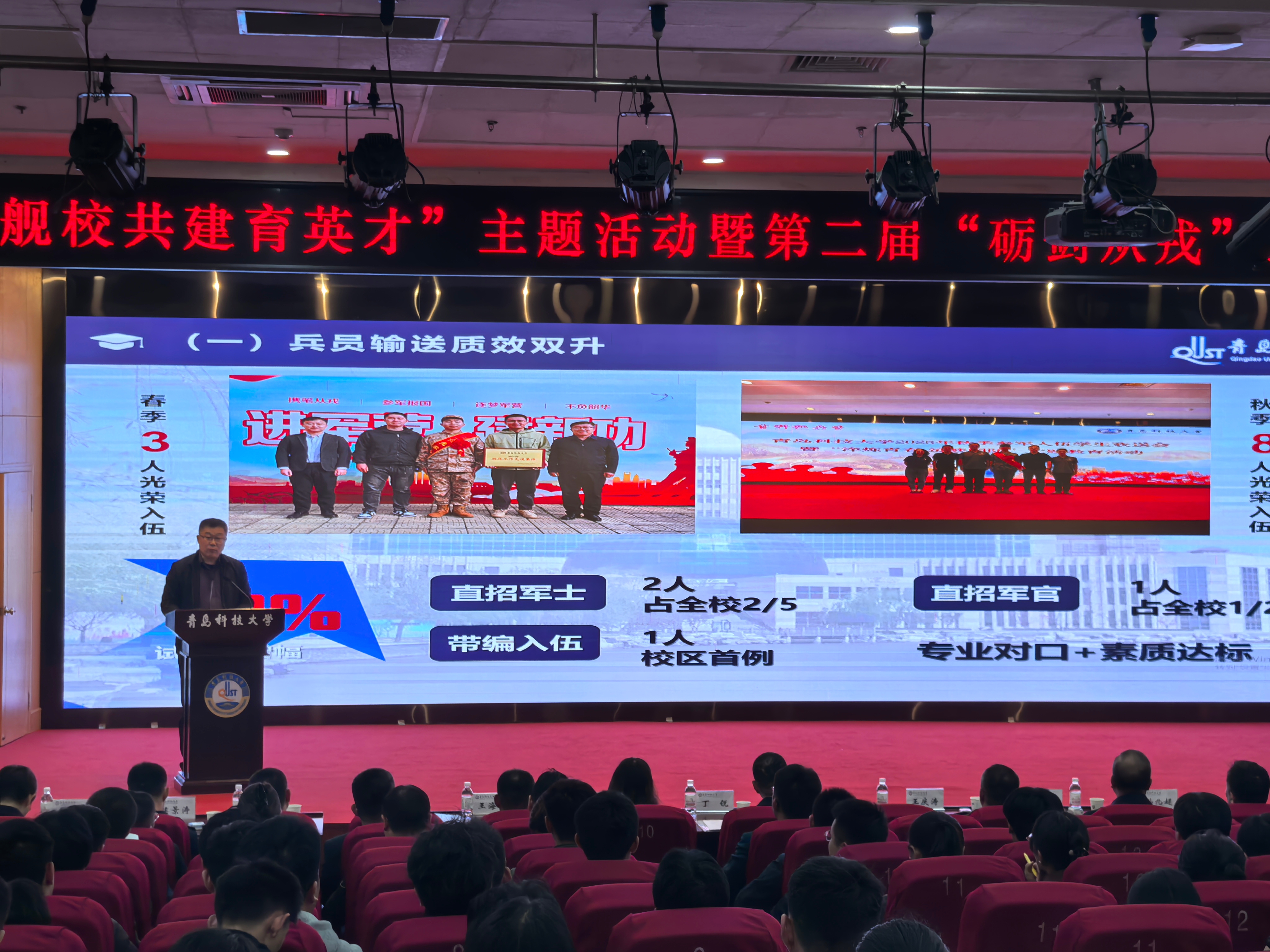 近日,学校“舰校共建育英才”主题活动暨第二届“砺剑从戎”预征预储训练营开营仪式在崂山校区第三报告厅举行。高密校区党委副书记王作辉出席并作试点工作专题汇报,学校“预征预储”项目组负责人徐连基就训练营整体工作作总结与部署。