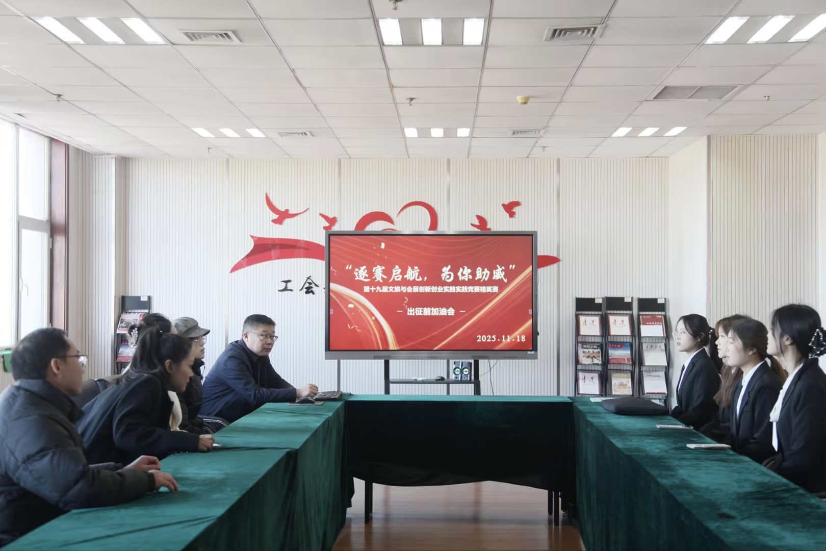 为助力团队在精英赛中再创佳绩,高密校区于赛前专门举办“逐赛启航,为你助威”出征加油会。校区党委副书记王作辉出席会议,为团队指明了项目优化路径与落地思路,搭建了从“竞赛方案”走向“产业实践”的桥梁。陈玉红、徐艳华、董晓艳、王金雨等指导教师全程参与,为参赛学生提供了系统、专业的备赛支持。