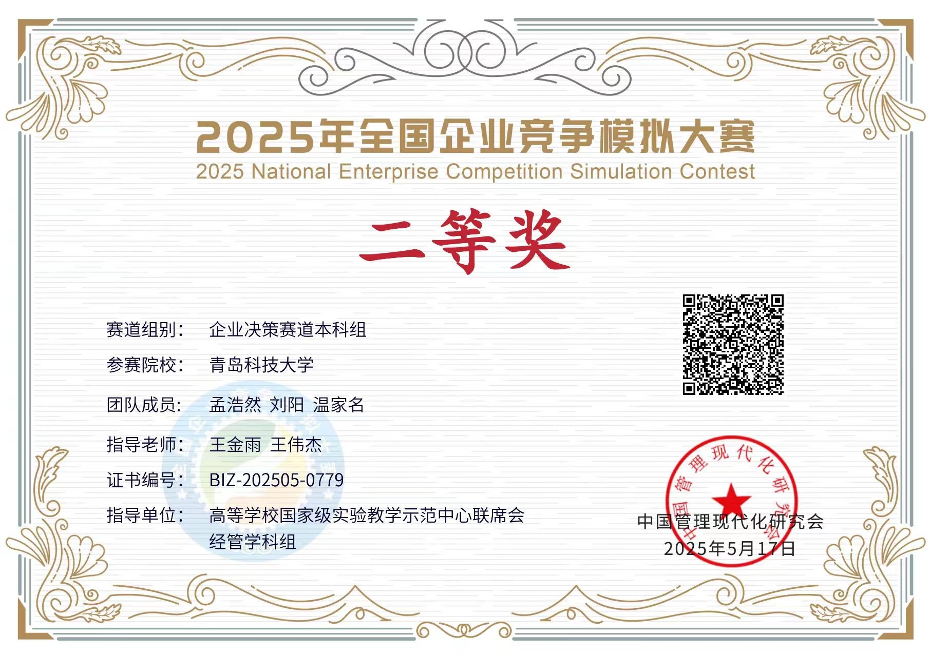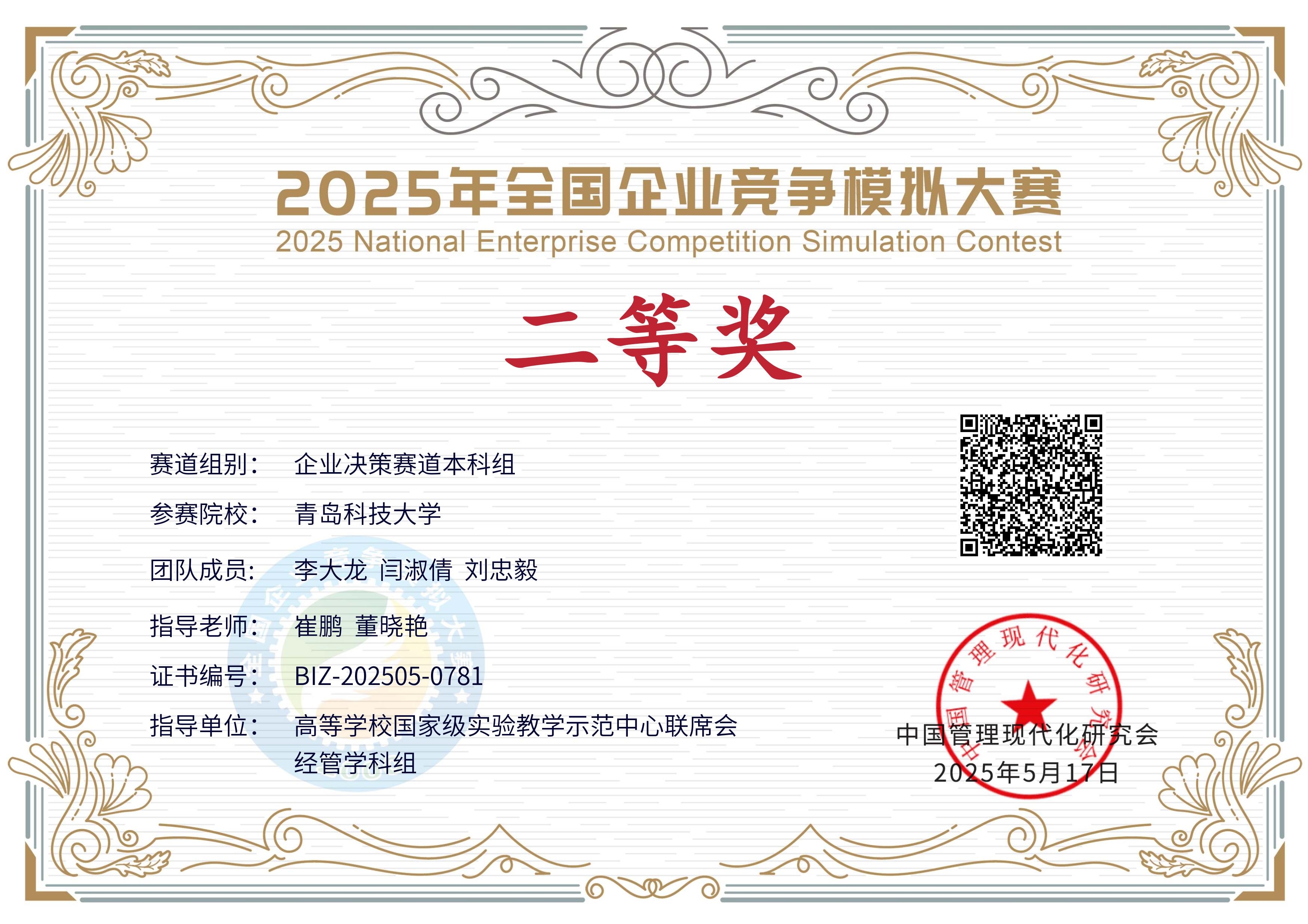 近日,2025年全国企业竞争模拟大赛总决赛圆满落幕。高密校区多支参赛团队凭借精准的市场研判、科学的经营决策和高效的团队协作,从全国众多参赛队伍中脱颖而出,最终斩获国家级二等奖4项、国家级三等奖3项,充分展现了校区在商科实践教学与创新创业人才培养方面的扎实成效。