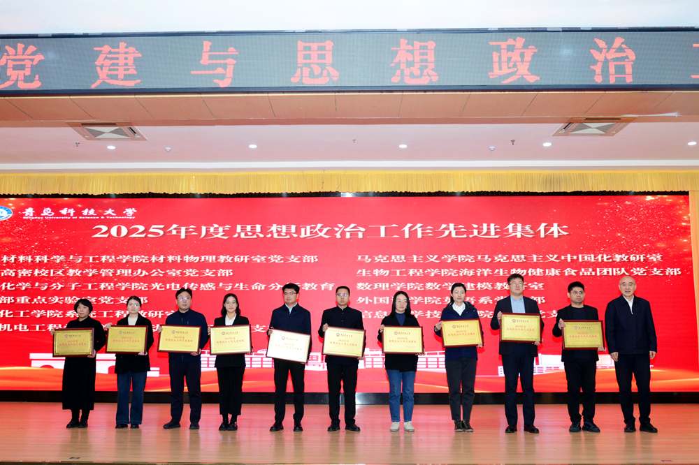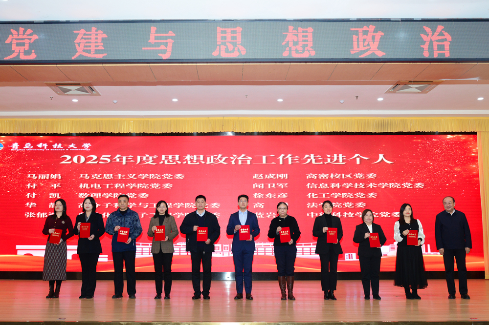 1月17日,青岛科技大学2025年党建与思想政治工作年会在崂山校区召开,高密校区凭借扎实的思政工作成效收获多项荣誉。校区教学管理办公室党支部获评“2025年度思想政治工作先进集体”,教师赵成刚获评“2025年度思想政治工作先进个人”。