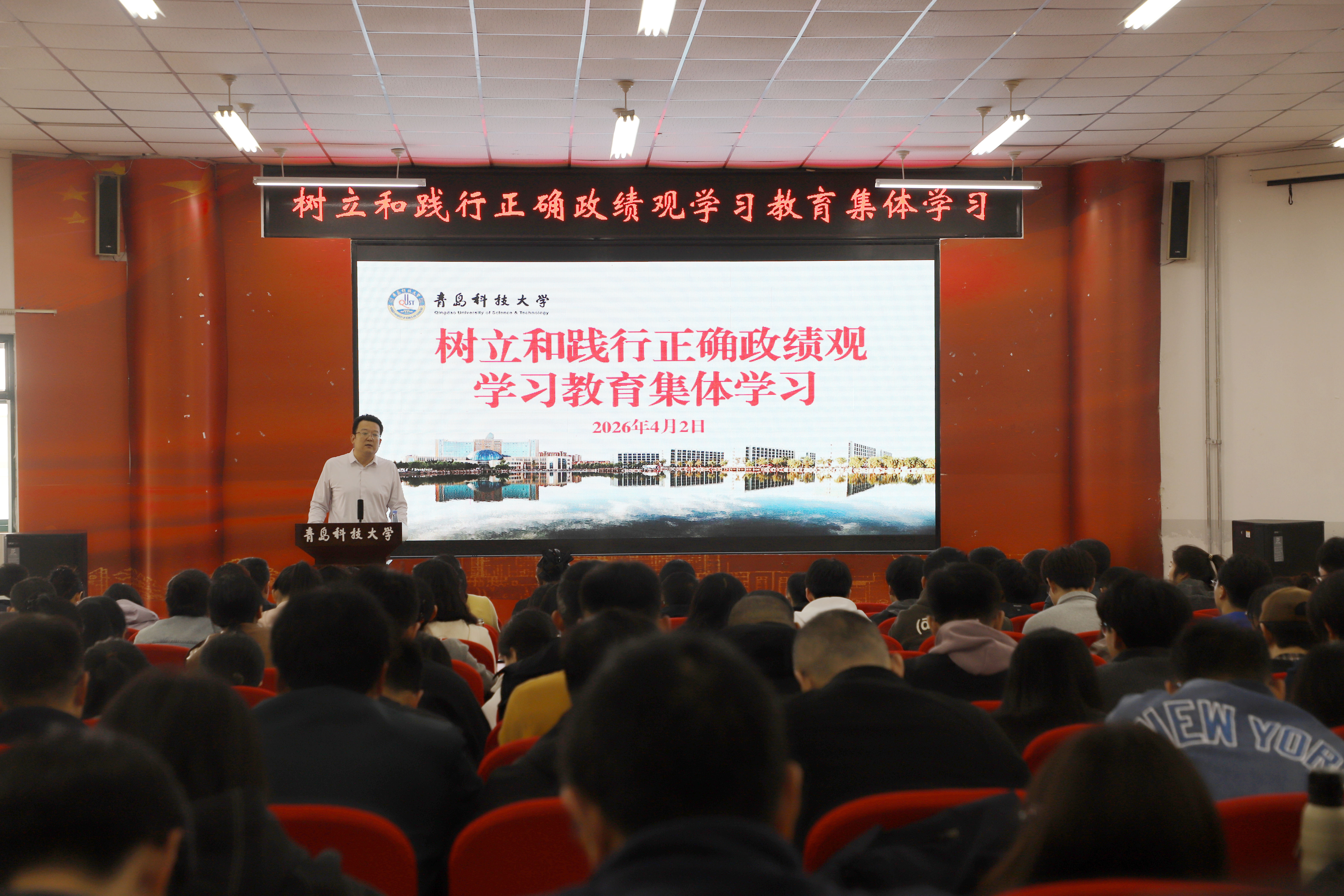 4月2日下午,高密校区在通德会堂召开全体党员大会,对树立和践行正确政绩观学习教育进行再动员、再部署、再推进。校区管理办公室主任兼校区党委书记张壮出席会议并讲话。