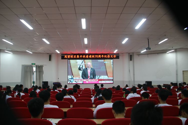 一、七千学子,共享盛典。校区在通德会堂201设置分会场,200余名同学在通德会堂同步收看青科大建校70周年纪念大会直播。其他学生以教室集中观看、宿舍集中观看、个人观看等形式开展。