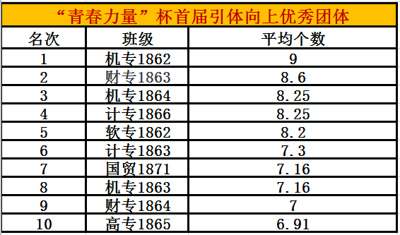 经过激烈的比拼,机专1862班等班级获得了优秀团体,高专1865孙俊超等10人获得了优秀个人。