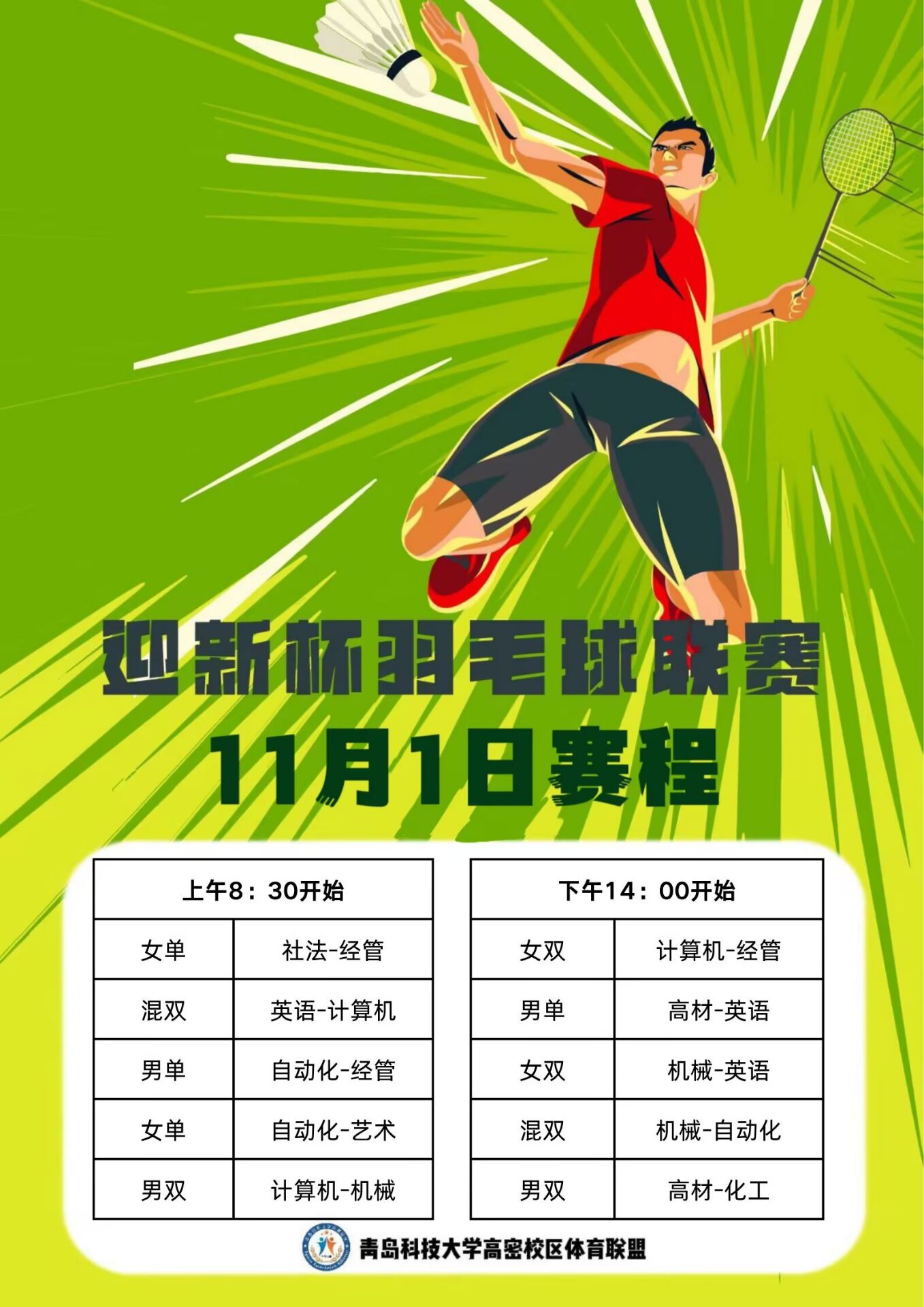 【赛事赛程】高密校区2025年11月1日“迎新杯”篮球、排球、羽毛球赛程
