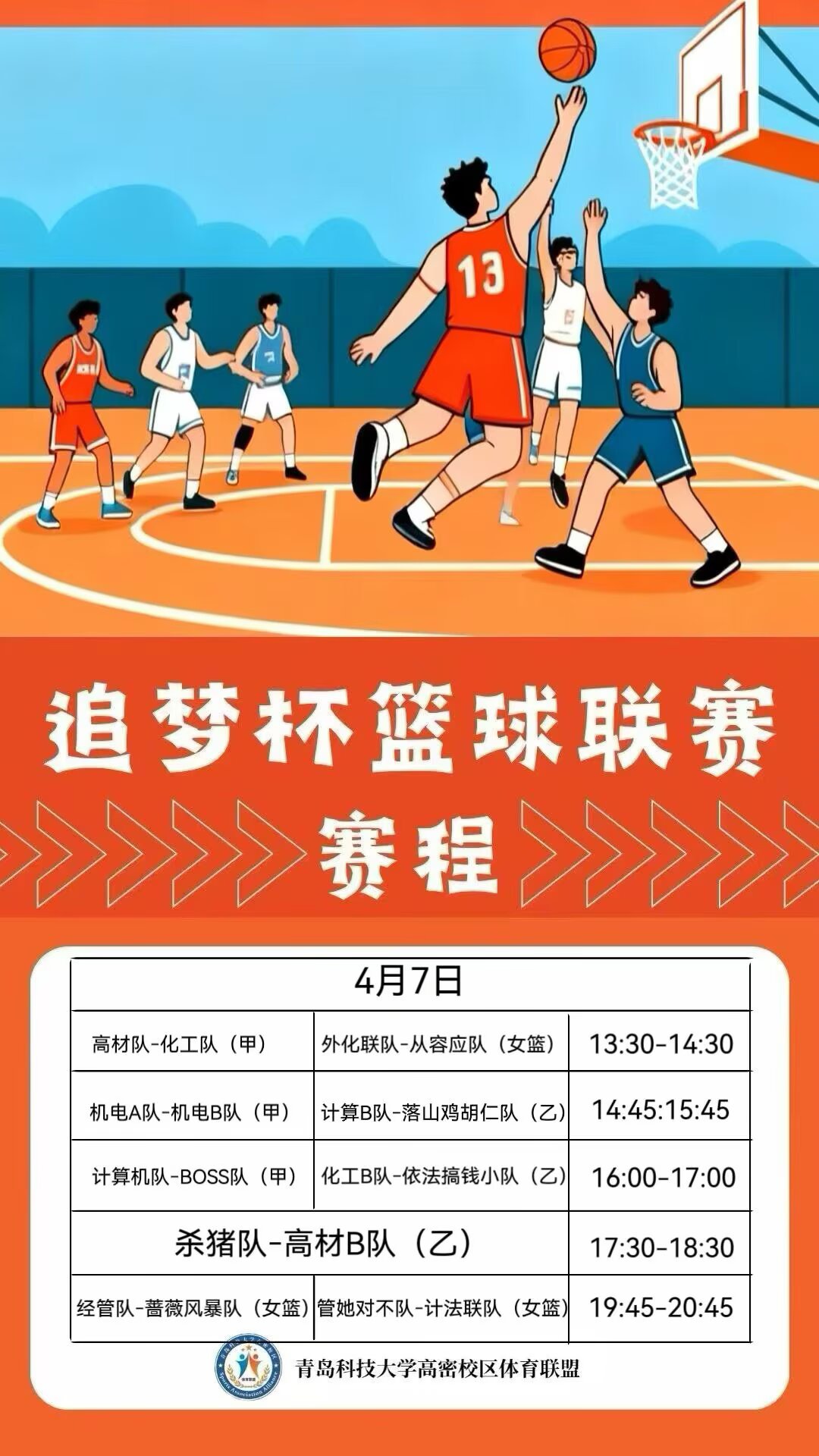 【赛事赛程】高密校区2026年04月07日“追梦杯”篮球赛程