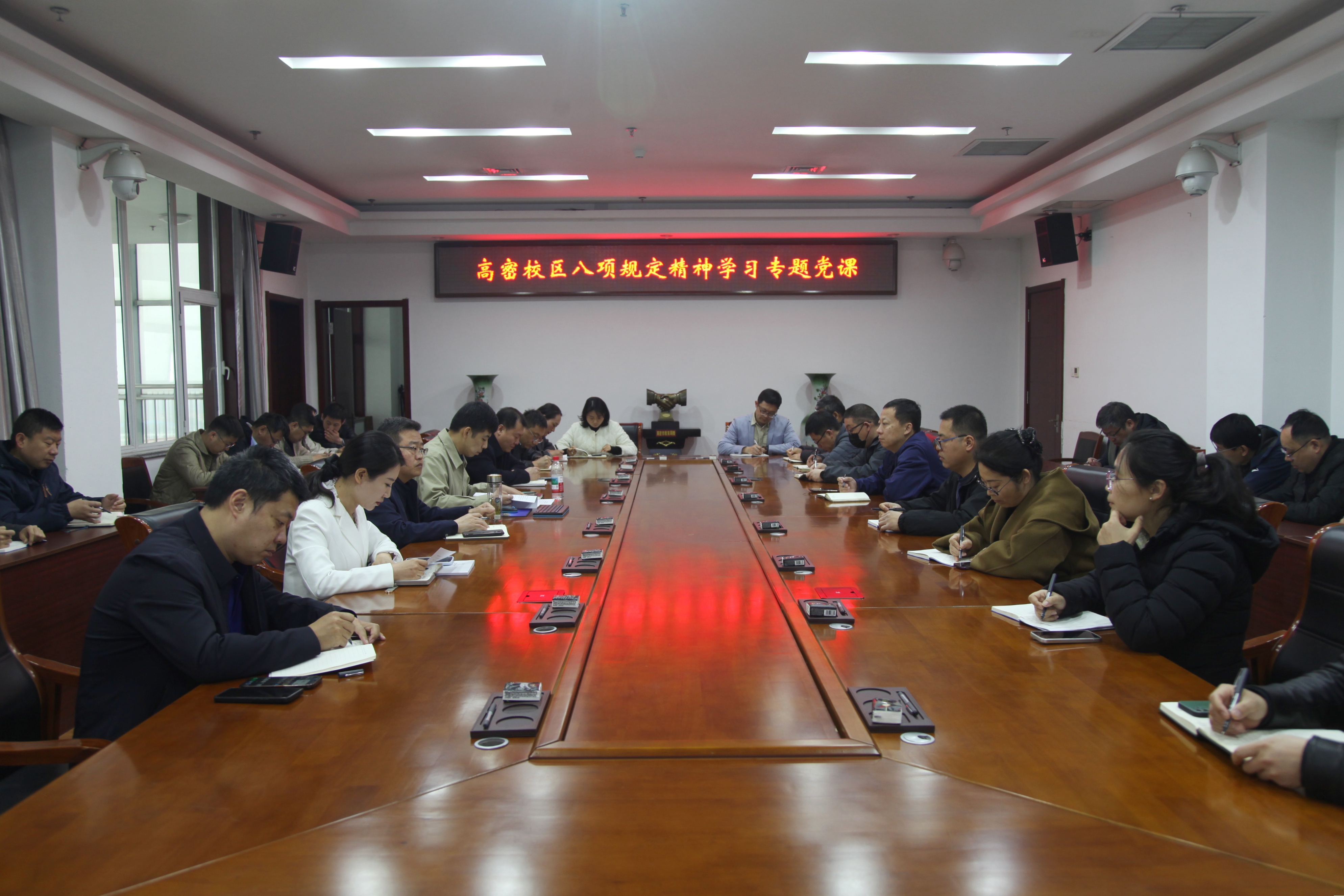 3月27日上午,高密校区在915会议室召开深入贯彻中央八项规定精神学习教育专题党课。校区党委书记马骥以《深入解读中央八项规定精神》为题,为全体科级及以上干部讲授专题党课。