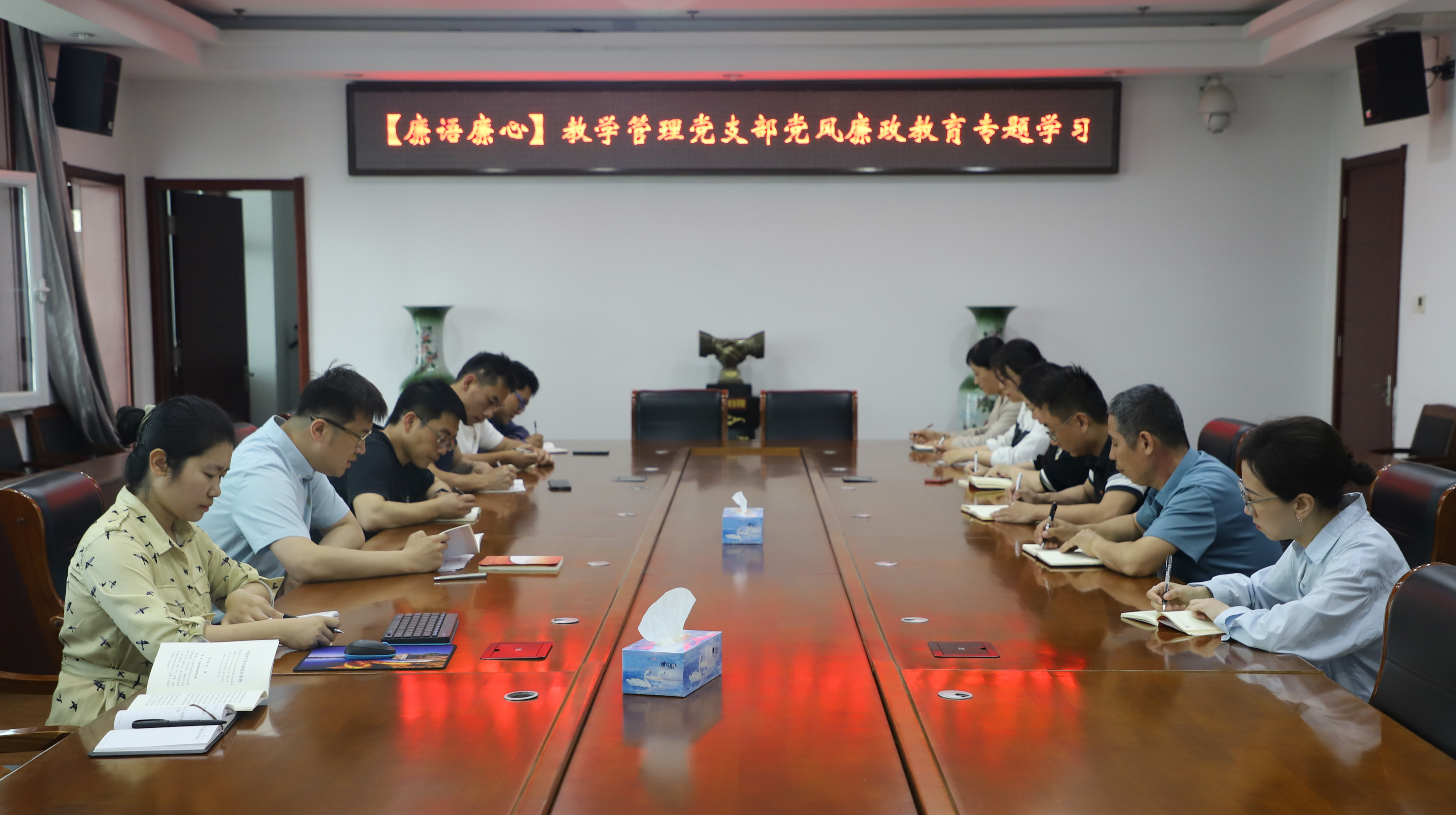 为进一步增强党员干部的党性修养和廉洁自律意识,5月28日上午,教学管理党支部在图书馆915会议室组织召开党风廉政教育专题学习会,会议由支部书记曹新明主持。