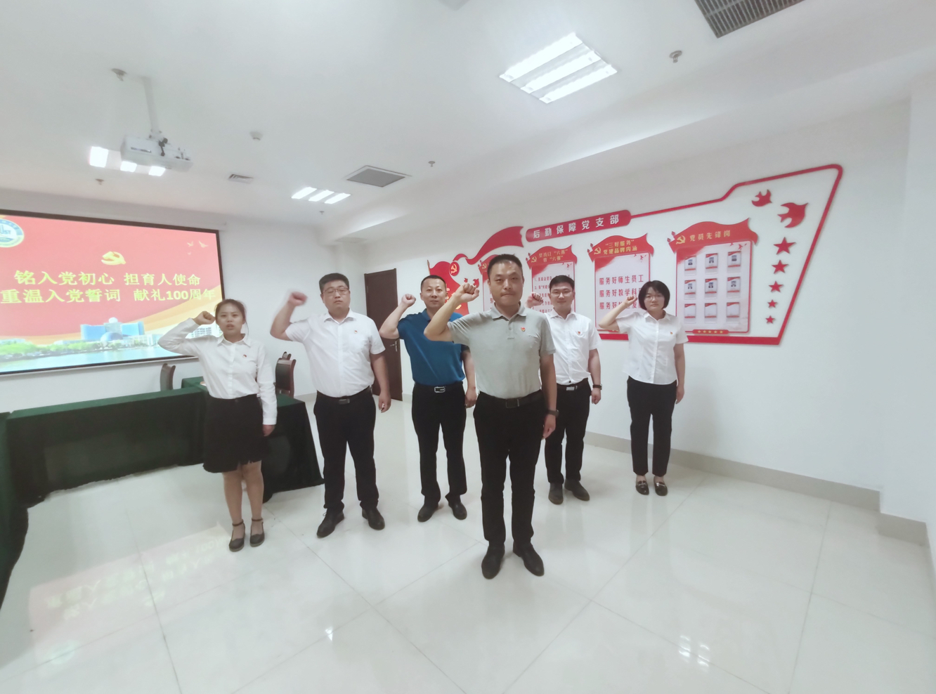 为进一步激发支部党员的政治热情,扎实开展党史学习教育,创新党员教育方式,以优异的成绩庆祝建党100周年,6月28日下午,高密校区后勤保障党支部以“铭入党初心 担育人使命 重温入党誓词 献礼100周年”为主题,集中为“七一”前后入党的3位党员过“政治生日”。