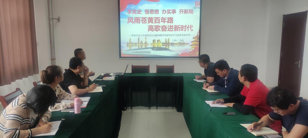 立志于千秋伟业,百年恰是风华正茂。6月9日下午,高密校区后勤保障党支部于图书馆615室开展了“学党史 悟思想 办实事 开新局--风雨苍黄百年路,高歌奋进新时代”为主题的党史学习教育专题党课,会议由党支部书记陈超主持,后勤保障党支部全体党员、后勤办科级干部、积极分子参加。