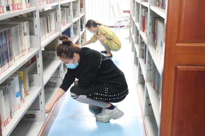 9月15日下午,正值校庆70周年来临之际,为了给读者营造干净卫生的阅读环境,校区图书馆充分发挥党员模范带头作用,采取“党员带非党员”、“老师带学生”的分工合作模式,对二楼各书库的书架进行了彻底地清扫。