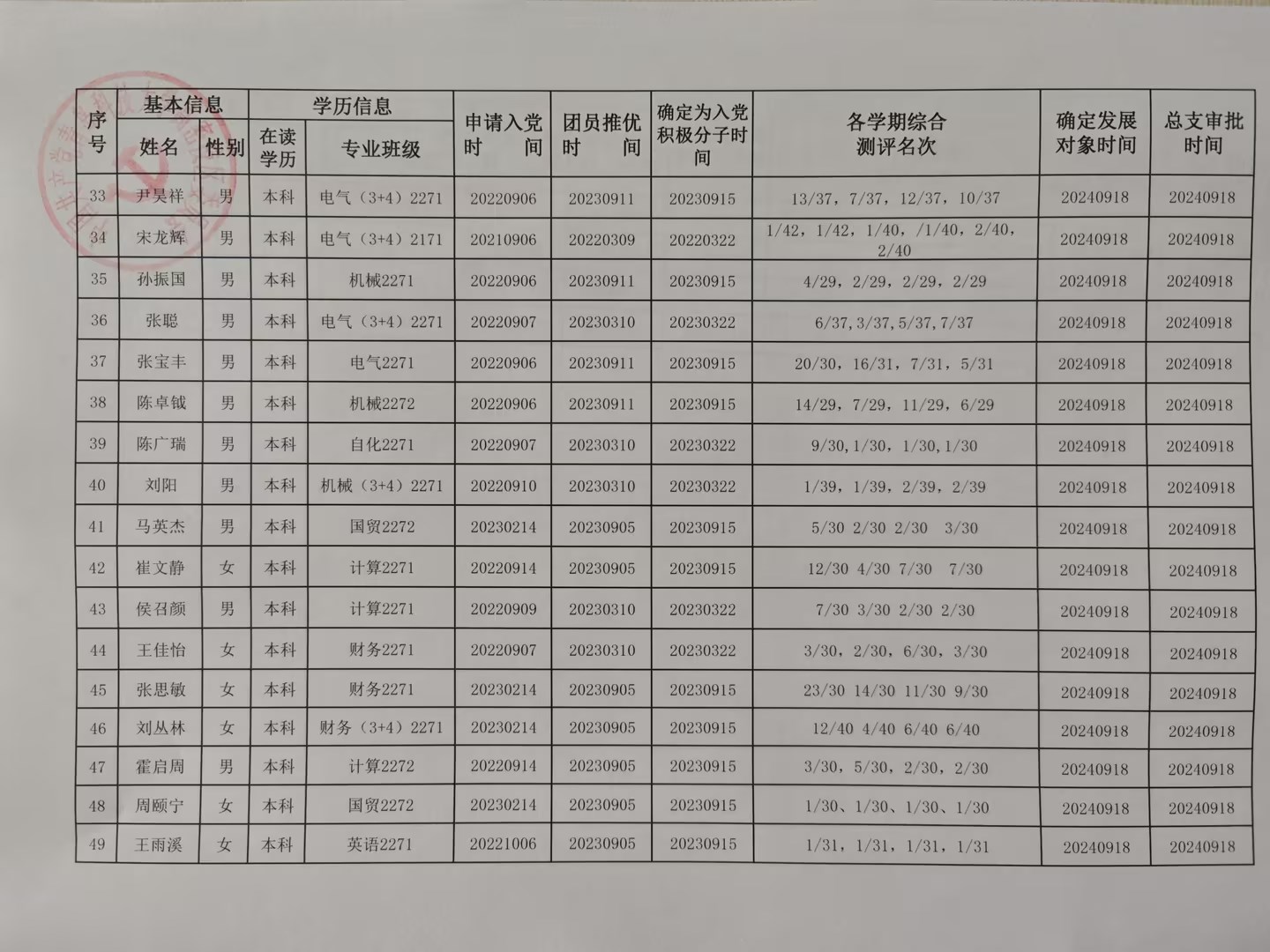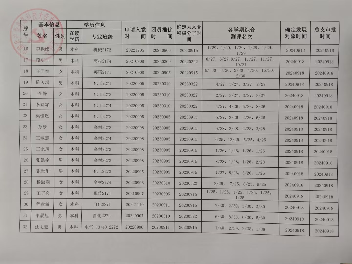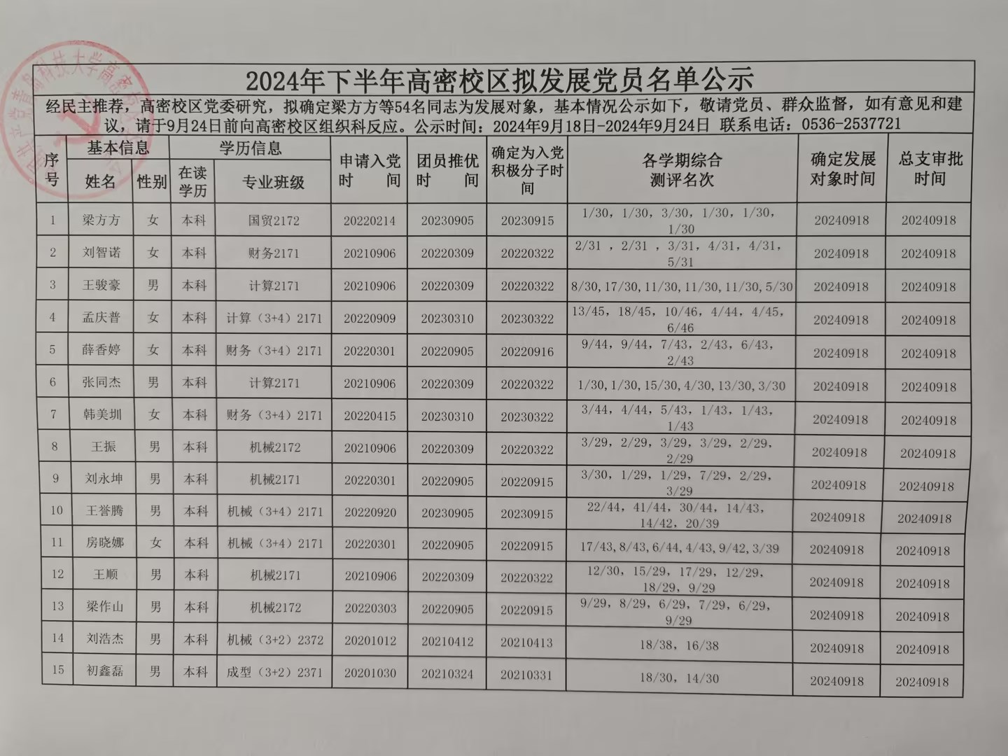 2024年下半年高密校区党委拟发展党员名单公示